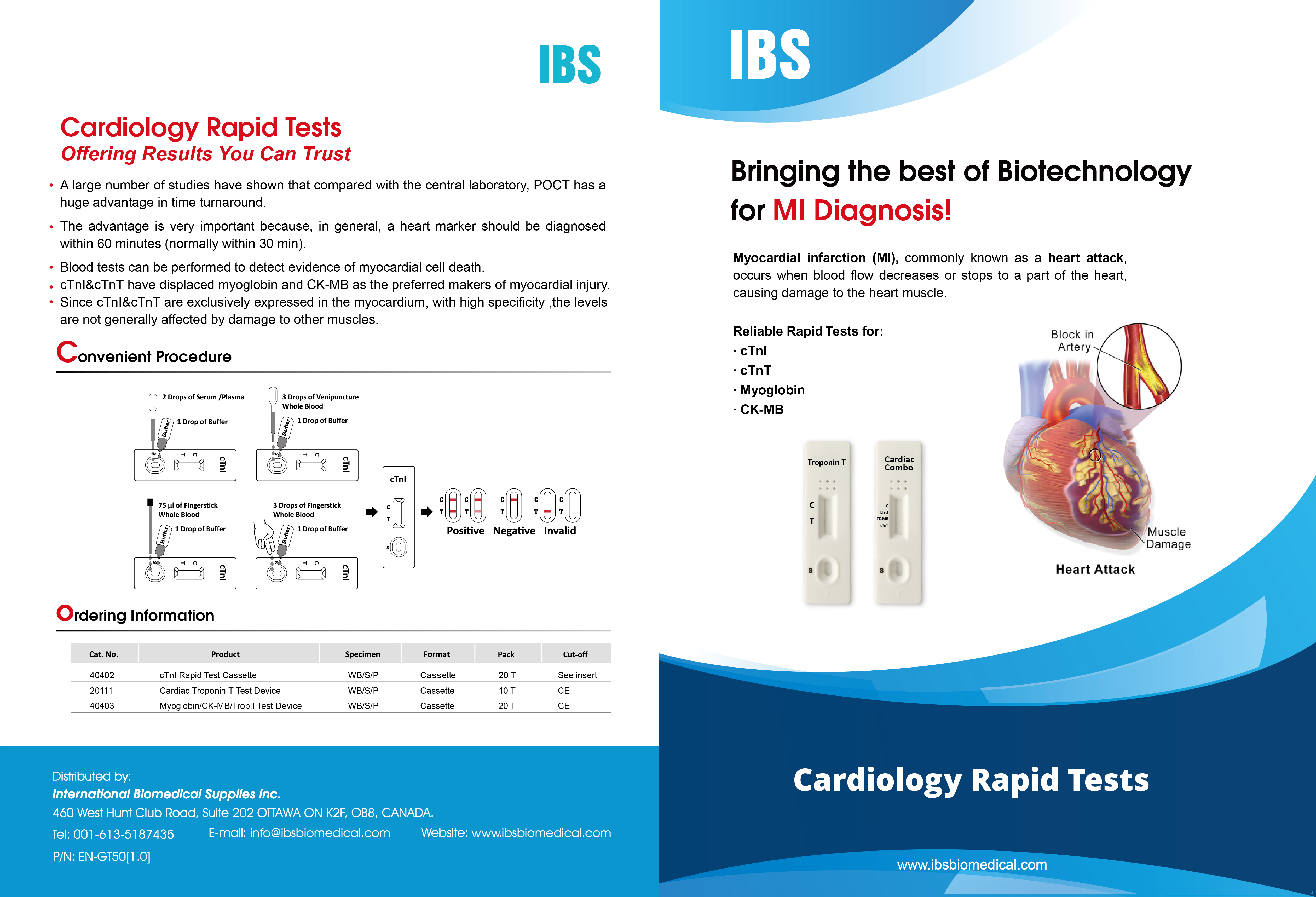 The Cardiac Troponin I Rapid Test Cassette (Whole Blood/Serum/Plasma) is a rapid chromatographic immunoassay for the qualitative detection of human cardiac Troponin I in whole blood, serum or plasma as an aid in the diagnosis of myocardial infarction (MI).