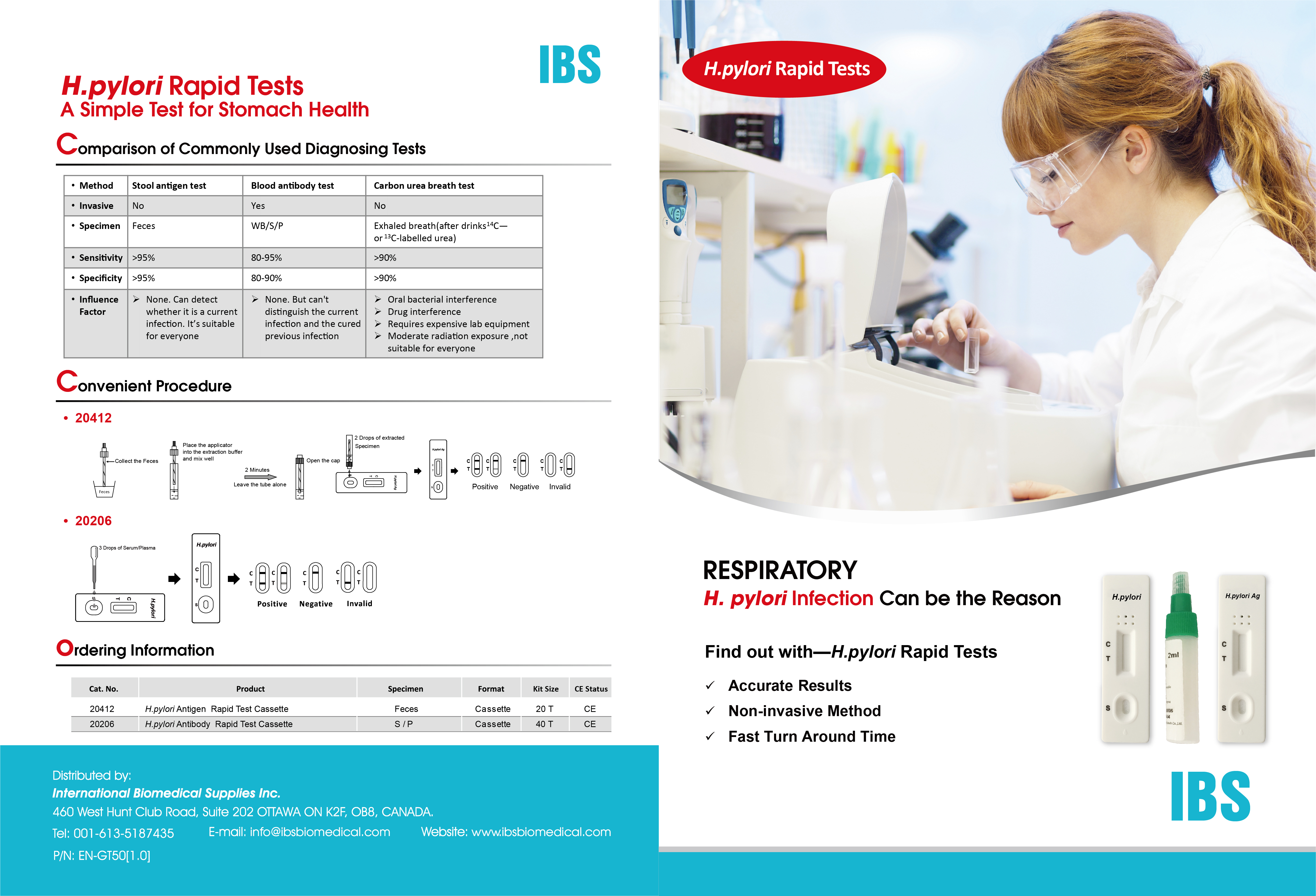 The H.pylori Antigen Rapid Test Cassette (Feces) is a rapid chromatographic immunoassay for the qualitative detection of H.pylori antigens in human feces specimens to aid in the diagnosis of H.pylori infection.